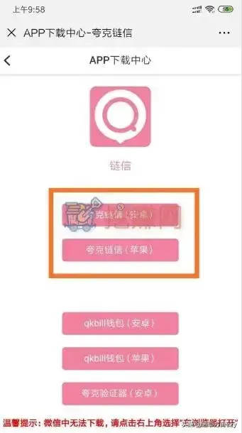微信扫码或微信点击链接下载夸克链信:
