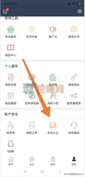 登录后,进入“我的”,点“实名认证”,实名认证分为:银行卡认证和刷脸认证,选择其中一个认证即可,不用两个都认证,这个是必须认证的,否则无法交易。