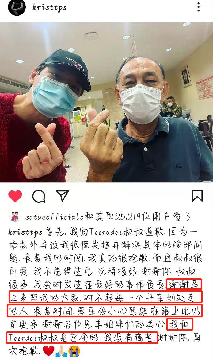 不过,Krist在医院检查时还能单手操作手机,看来的确是没有大碍。