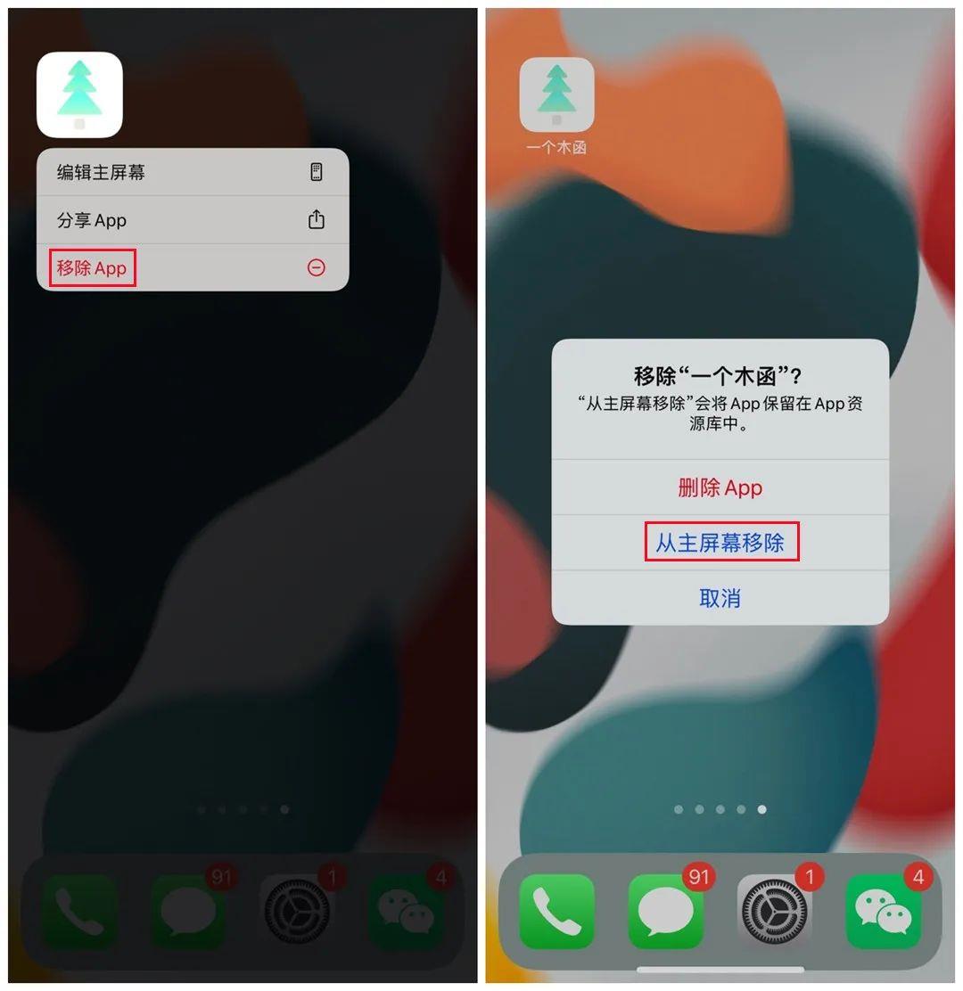 苹果手机隐藏应用比较方便,只需在桌面长按对应的软件图标,选择「移除App」,弹出移除的弹窗后,点击「从主屏幕移除」,就可以发现图标已经消失了。