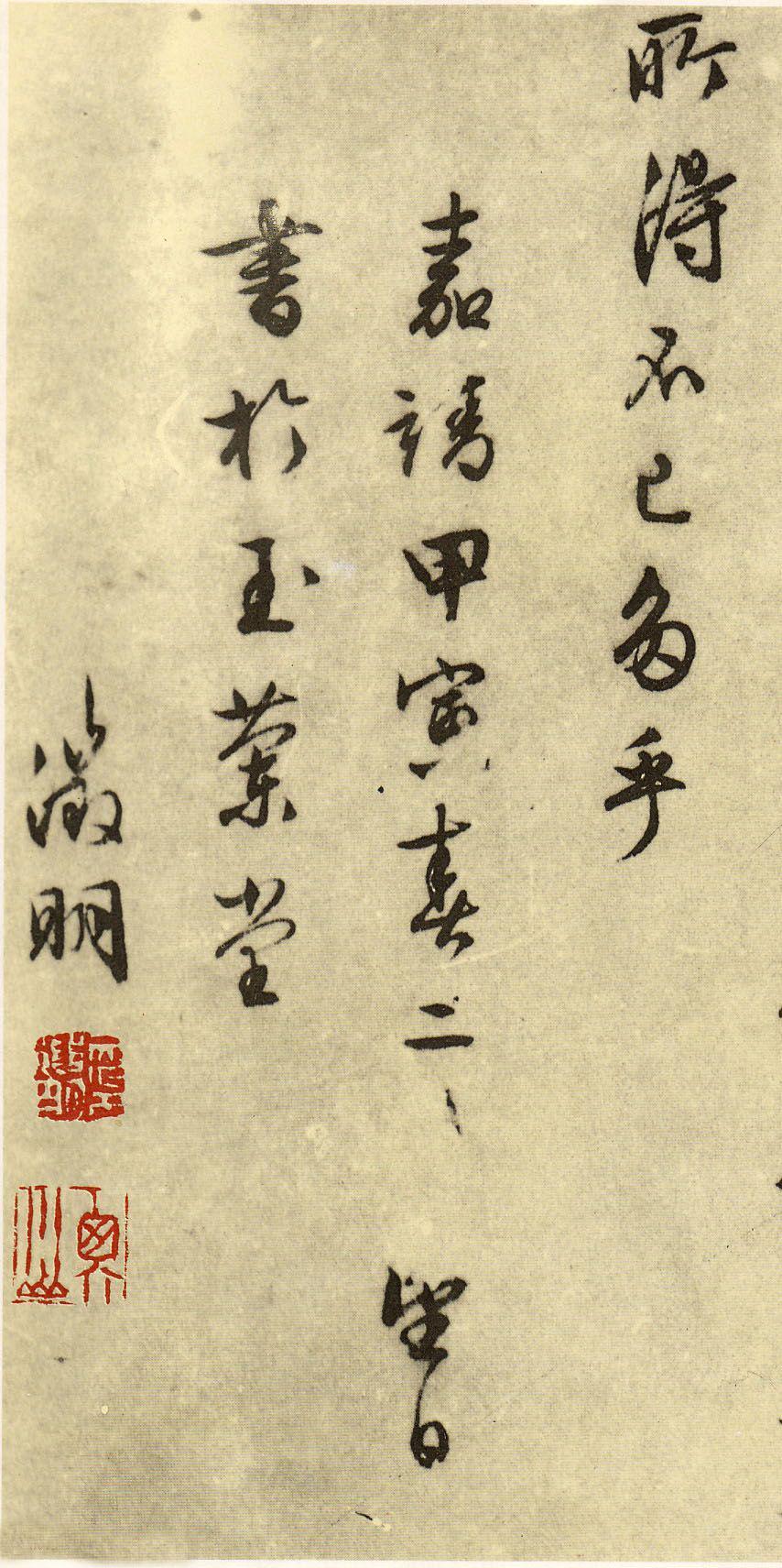 然此句妙矣,识其妙者盖少。彼牵黄臂苍,驰猎于声利之场者,但见滚滚马头尘,匆匆驹隙影耳,焉知此句之妙哉?人能真知此妙,则东坡所谓:无事此静坐,一日是两日。若活七十,便是百四十,所得不已多乎!嘉靖甲寅春二月望日书于玉兰堂