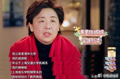 黄圣依妈妈自己说,我的父亲是清华大学的,我的叔叔毕业于上海交通大学机械系,我的婶婶是上海音乐大学钢琴系的,我姑妈创办了新民晚报。听到这样的家世背景,难怪她会对安迪的教育如此重视。