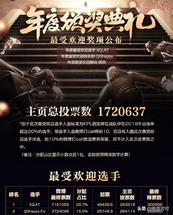 再回头看看这次的王者荣耀年度盛典的投票情况,此次打榜历时一年,凭借阿泰自身庞大的粉丝量,每天坚持不懈地给阿泰投票拉票,前几个月就已经蝉联选手打call榜冠军,后来也正因为微博打call榜的票数加成,最终让阿泰获得高达五万票的支持,总票数以三十万超过了Fly的总票数二十八万,赢得最受欢迎选手的荣誉。