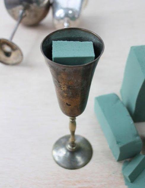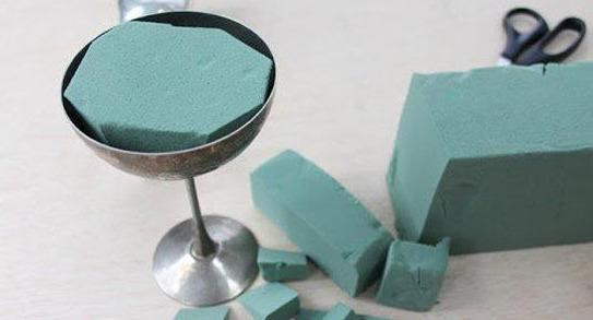 首先将花泥剪成适合你圣杯的大小。