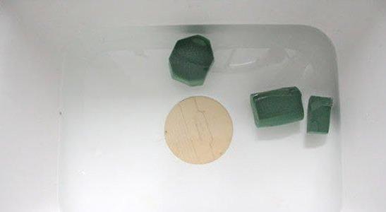 将花泥放入盛满水的碗中,并让它自己下沉到水底,吸足水分。