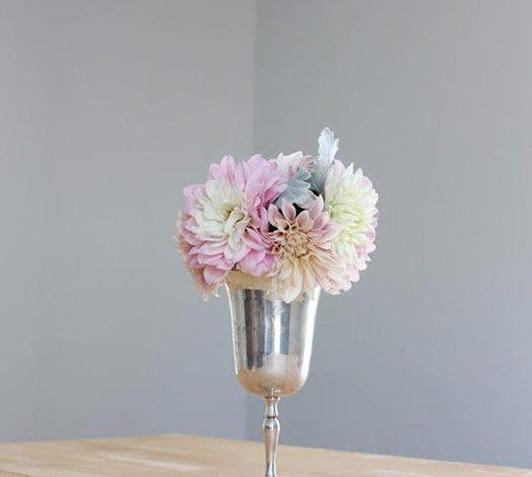 简易插花入门教程图解,所用花器源自于废旧的圣杯~