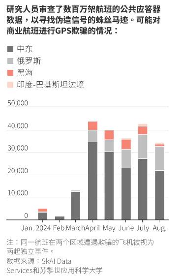 根据苏黎世应用科学大学的分析,现在受 GPS 欺骗事件影响的航班数量已从今年 2 月份的每天几十架飞机激增至 8 月份的每天超过 1100 架次。