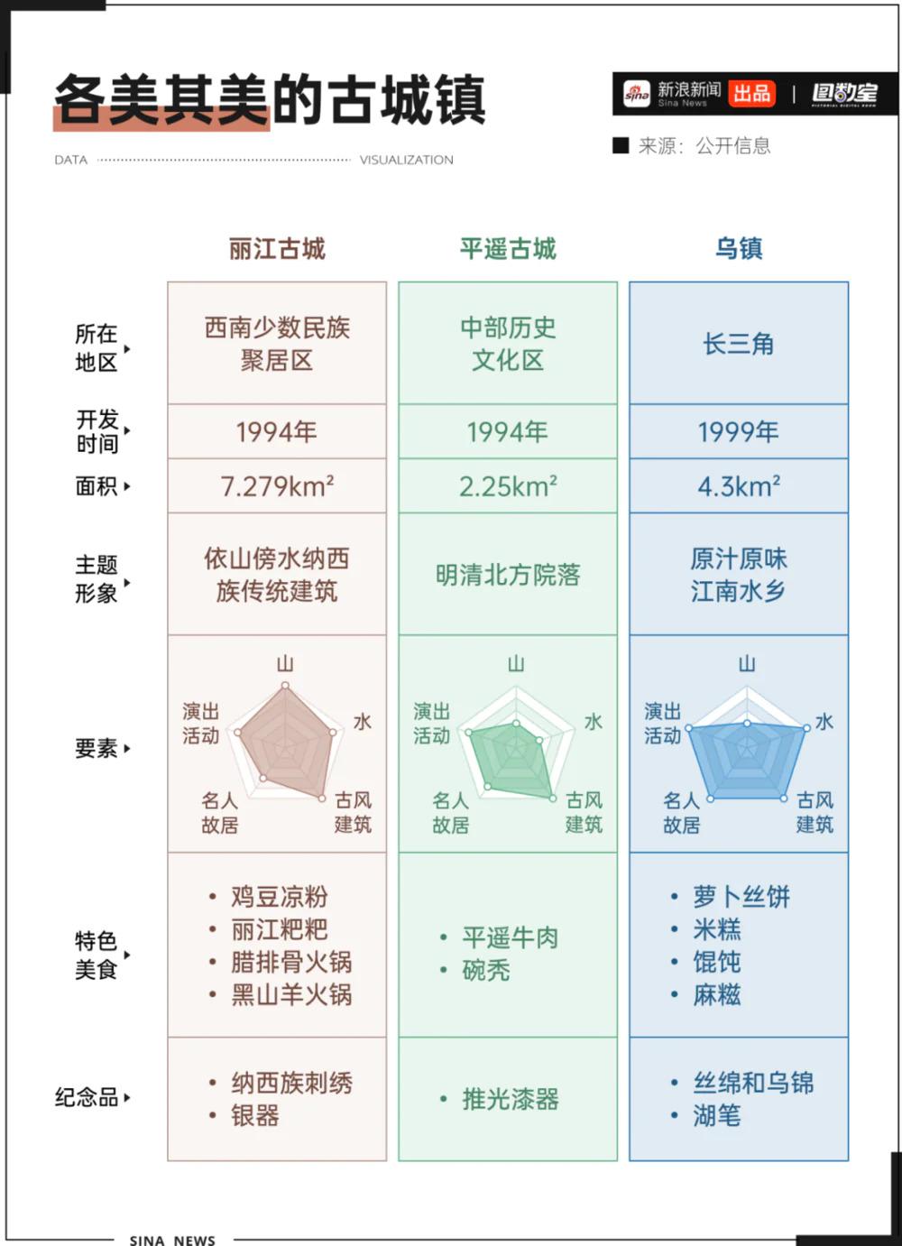 我国拥有广袤的国土,丰富的文化,各地有非常多的旅游资源等待挖掘。上世纪 90 年代开发的一批古城镇,如:西南丽江古城充满民族风情,山西平遥古城展现厚重历史,长三角的乌镇江南水乡岁月静好 …… 可以说是 " 各美其美 "。
