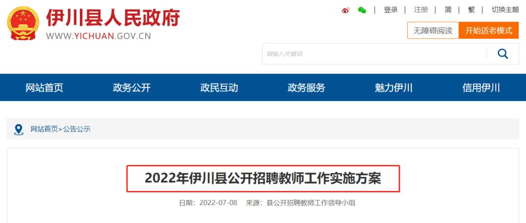 本次招聘工作在县委、县政府的领导下,由2022年伊川县公开招聘教师工作领导小组组织实施,县纪委监委全程监督。