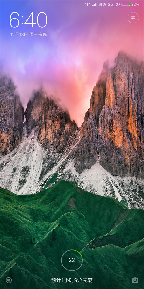 晚上6:40截图,充电10分钟,充到了22%,预计1小时9分充满。
