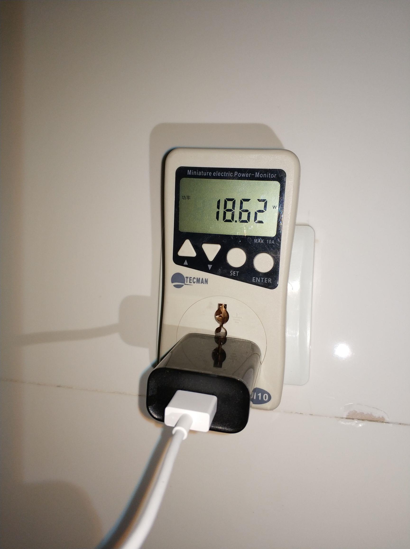 开始的充电功率是18W。有朋友说这里边包含了充电头消耗的功率,这话不假,但是很少的,基本可以忽略不计。