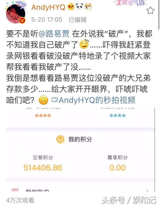 而为了做出更有力的回击,证明自己并没有破产,黄毅清还专门录了自己银行余额的视频,真的是实力打脸路易贾~