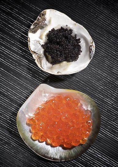 鱼子酱在法国,严格来说,只有鲟鱼卵才有资格制作鱼子酱。鲟鱼卵质量最好的白鲟能产出世界上最珍贵、最稀有的鱼子酱,颜色从浅灰色到灰黑色不等,一直被誉为“里海明珠”。通常白鲸一年捕捞的鲟鱼不到100条,只占鲟鱼总捕捞量的2%,真可怜。