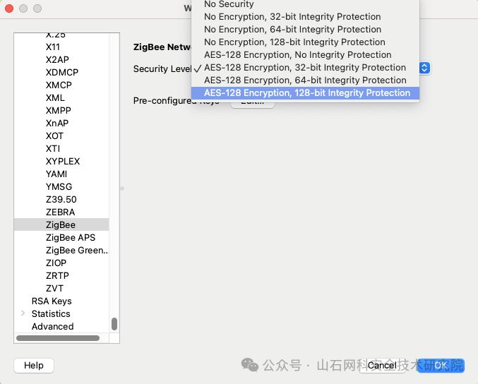 Wireshark 里面提供的安全级别可支持预设密钥用于解析数据包