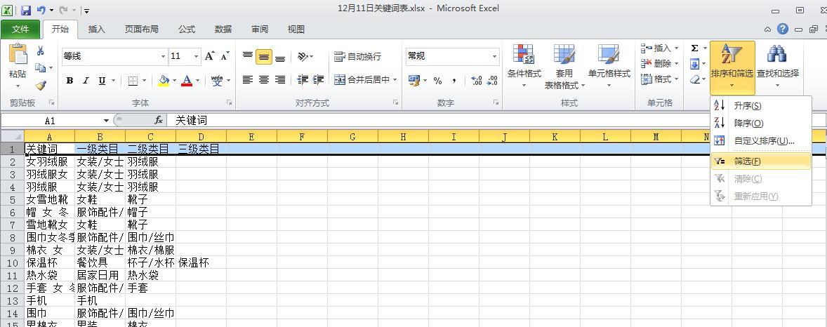 利用EXCEL的筛选功能,筛选一级二级三级类目,锁定你类目的关键词。选择和你产品相匹配的关键词组合标题就可以了。这是最简单的一种找词的方法。希望大家多多尝试用起来。效果很不错的。