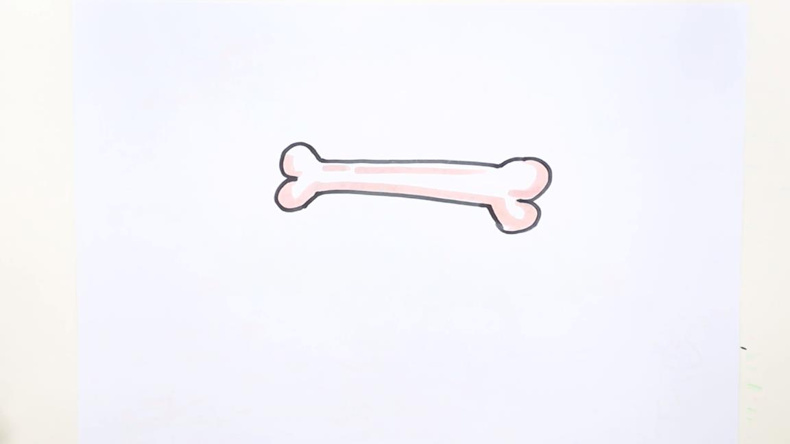 步骤②最后沿着骨头的内缘线,用粉红色涂上它的阴影,并将上方的两端留白。