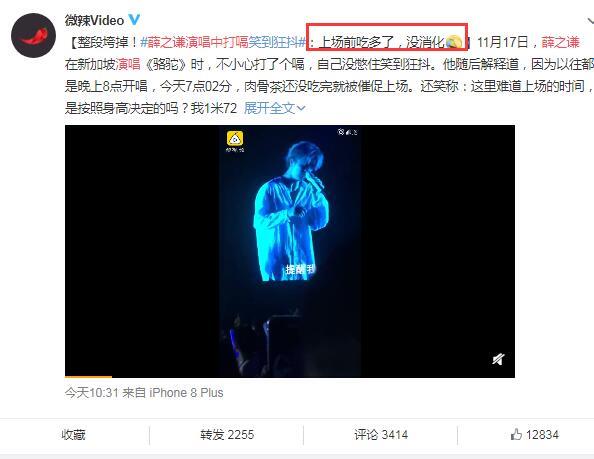 整段垮掉!薛之谦演唱时打嗝,现场爆笑不停,网友:意外的惊喜