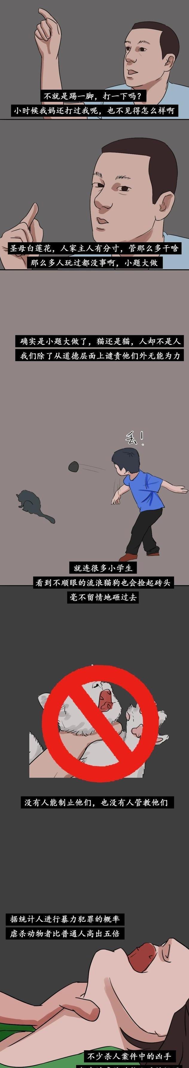 生命不是玩具,小宠物也是一条鲜活的生命,无故残害与杀人无异,虽然不用负法律责任,但是这种行为也应该谴责!