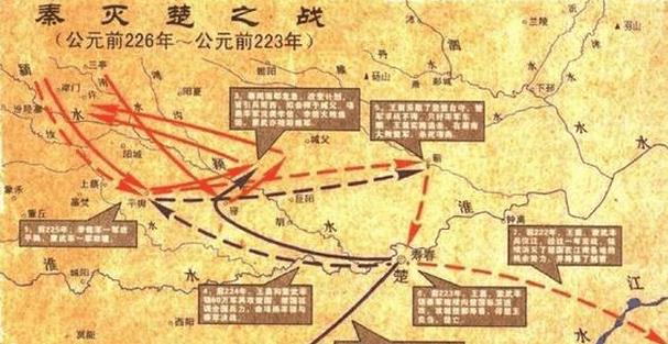 秦始皇二十二年(前224年),王翦领兵60万伐楚,第二年大破楚军,杀楚国大将项燕于蕲,虏楚王负刍,平定楚国 。随后又南征百越,取得胜利,因功晋封武成侯。