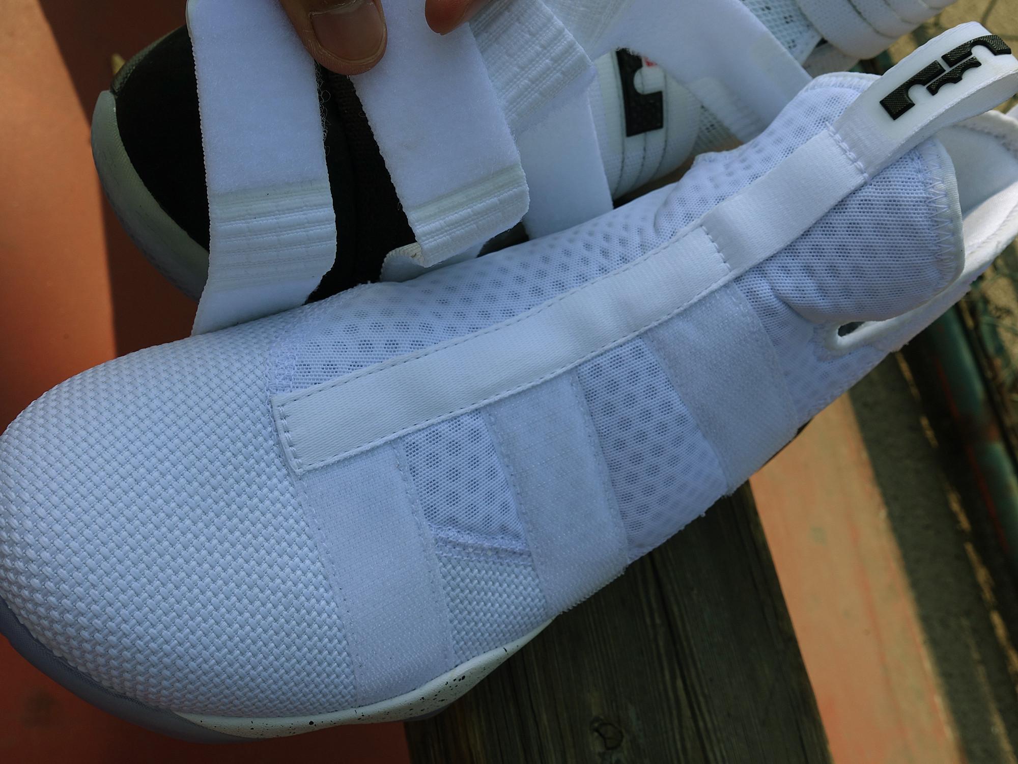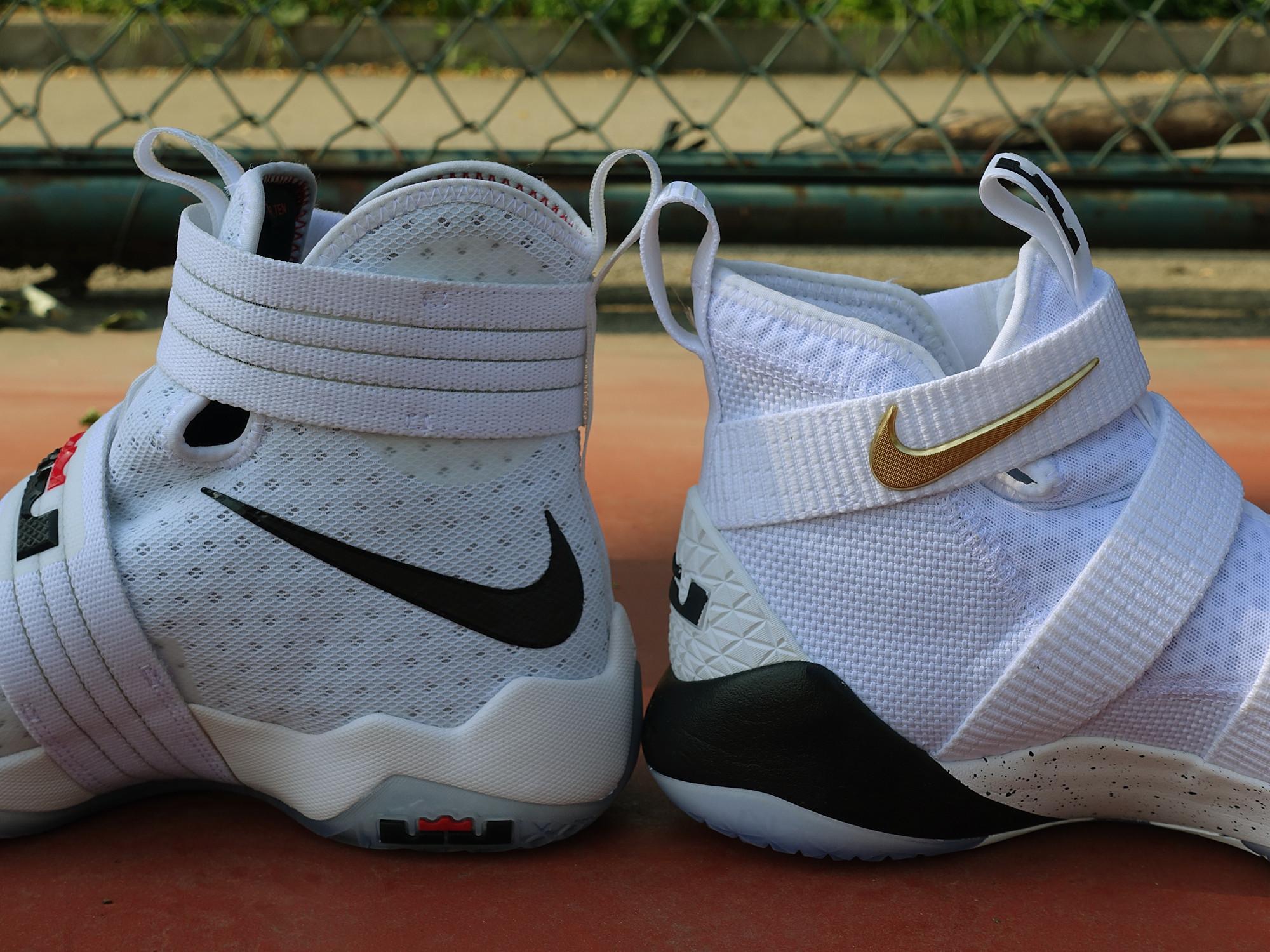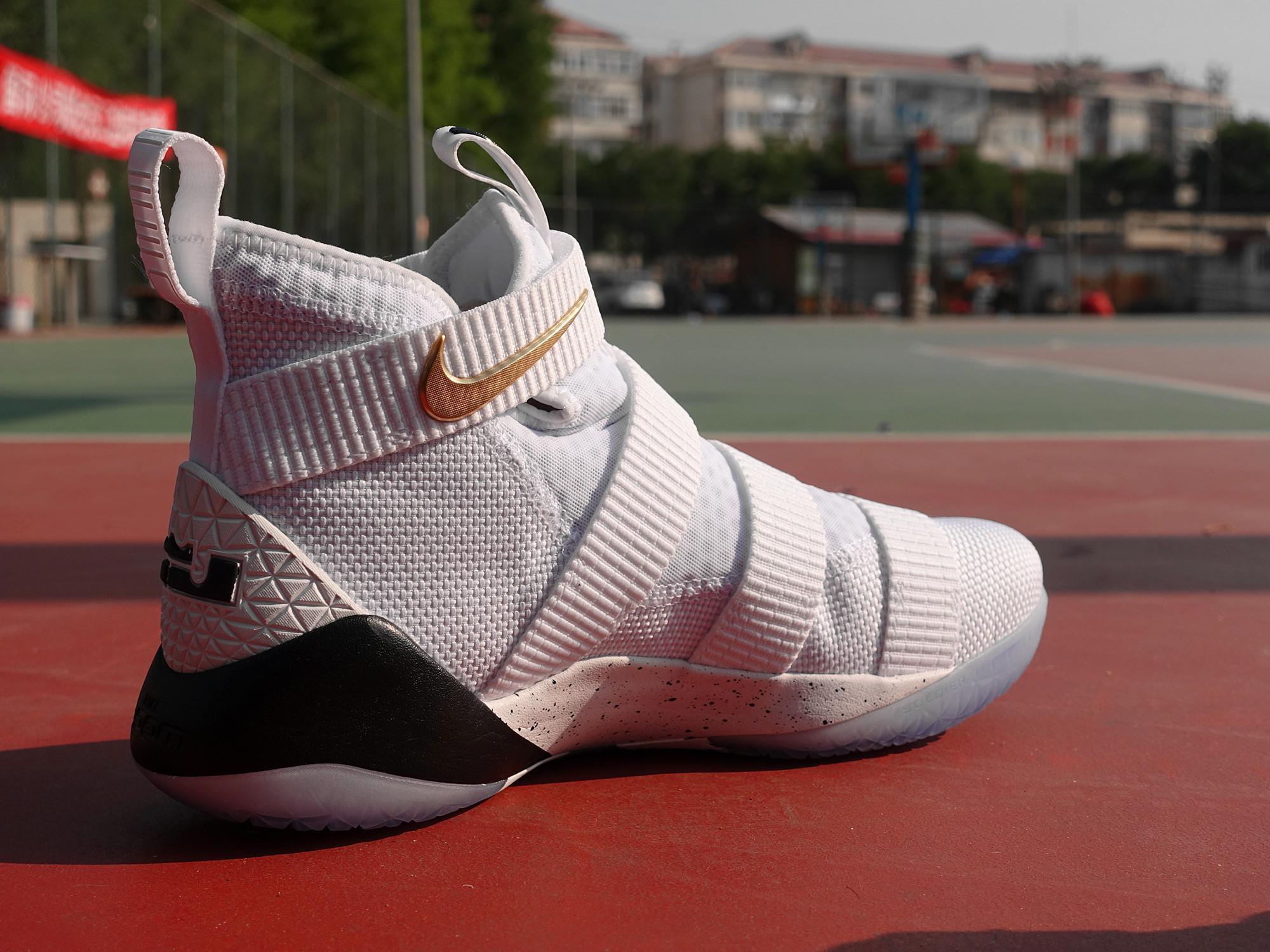 由于绑带的位置,Soldier 11也没有侧面的硕大Swoosh,而是放在了后跟的位置。Lebron 的个人logo也弱化处理,整体很好地保存了鞋本身的造型。