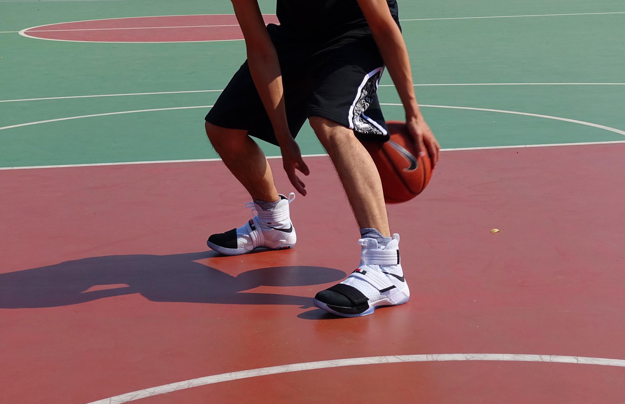 其次,Soldier 11的绑带间距更小,对鞋面包裹的加成更好,实战强度上来以后会感觉Soldier 11的锁定效果更好,急停变向更有信心。