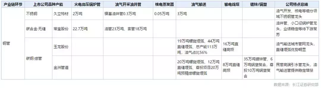 钢管类主要上市公司有以下几个: