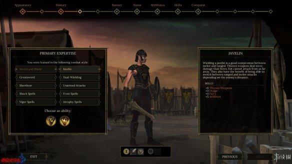 5.次要专长:大致和上面的相同,[剑与盾]变为[矛与盾],[巨剑]变为[战斗法术]。 战斗风格下可以选择角色的天赋技能。之后是角色命名,就不附图了。