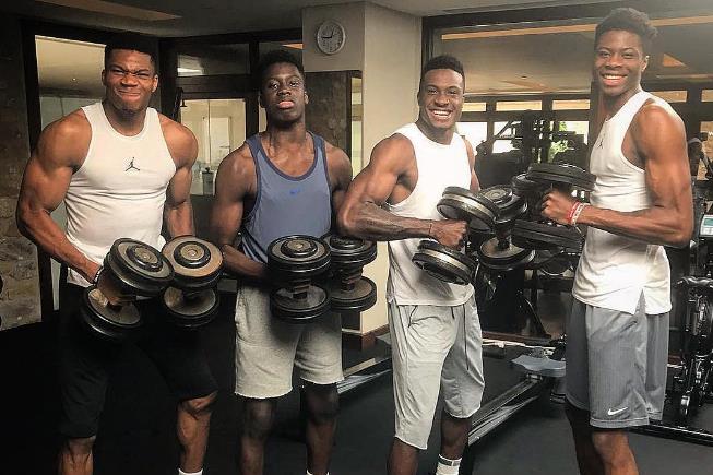 在今年夏天,字母哥在社交媒体上晒出了一张兄弟四人一起训练的照片,从照片中看来,字母哥身材再度升级,浑身都是充满力量的强健肌肉,而他那粗壮的手臂成为了球迷关注的焦点,当时字母哥手提两个臂力杠铃,浑身肌肉紧绷,手臂肌肉给人极强的视觉冲击感,这也难怪字母哥能够在内线所向披靡了。