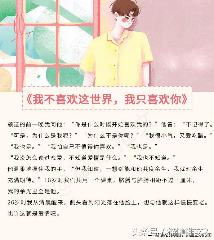 这个电视剧改编自小说《我不喜欢这世界,我只喜欢你》作者:乔一,这部剧由张雨剑和吴倩领衔主演。这本书超暖的,是作者乔一和她老公F君的自传,讲述的就是他们之间的日常零碎,感动了一波又一波的书友,跟着这种类型相似的文还有柏林石匠的《余生,请多指教》也超好看,感兴趣的可以去搜一下。