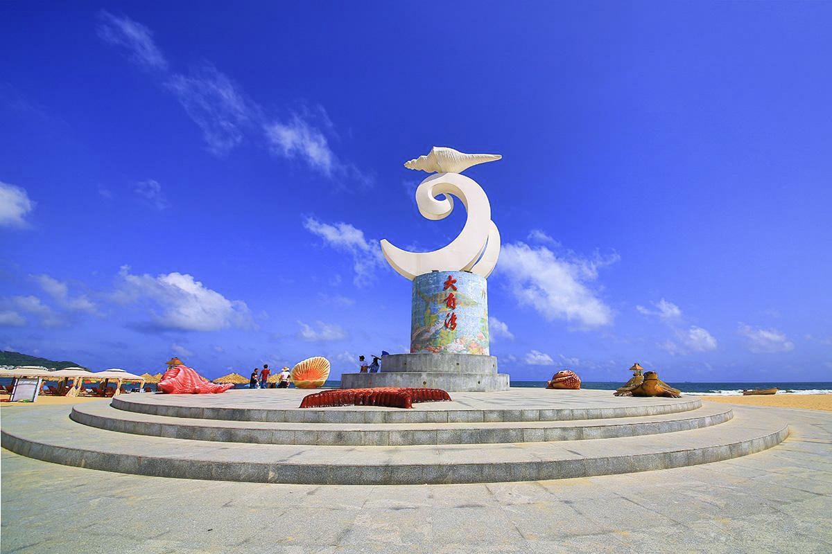 1986年7月开发,大角湾以其得天独厚的优势,1989年被广东省人民政府批准为省级风景名胜区。1992年海陵岛经济开发试验区成立后,经过整体规划和统一建设,目前成为海陵岛旅游资源综合评价良好的景区。点大岭埂隧道的开通,车辆可沿环岛公路长驱直入。望见阳光下熠熠生辉的海螺雕塑时,己到大角湾了。
