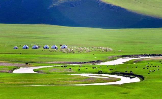 内蒙古大草原。它是中国最知名的草原,这里的蓝天、白云、碧草,骏马、群羊、飞鸟,敖包、牧歌、毡房,几乎就是中国草原风光的代名词。