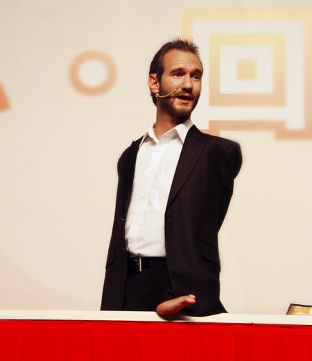 尼克·胡哲(Nick Vujicic),1982年12月4日出生于澳大利亚墨尔本,澳大利亚演讲家。他一生下来就没有双臂和双腿,只在左侧臀部以下的位置有一个带着两个脚趾头的小"脚",他妹妹戏称为"小鸡腿",因为尼克家的宠物狗曾经误以为那个是鸡腿,想要吃掉它。