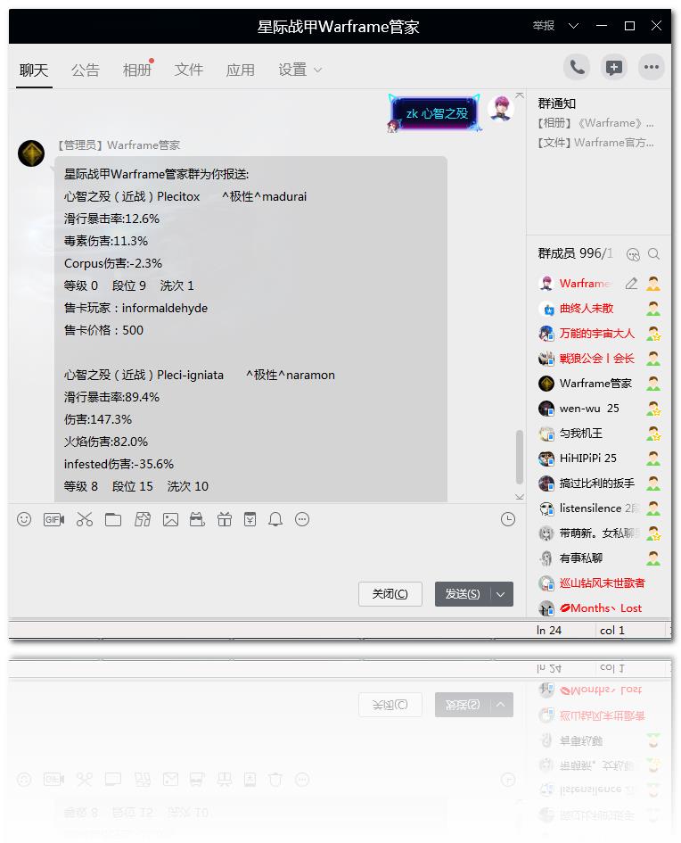 截止12月1日,心智之殁在紫卡市场平均价格:1070白金;如何在Warframe管家┟.ℚ羣通过简单指令格式(zk 心智之殁)轻松获得如下交易资讯: