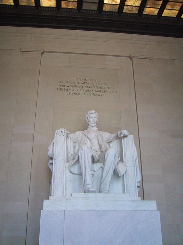 这是美国华盛顿林肯总统纪念堂里的林肯总统雕像,几乎每天都有人来这里“探望总统”。