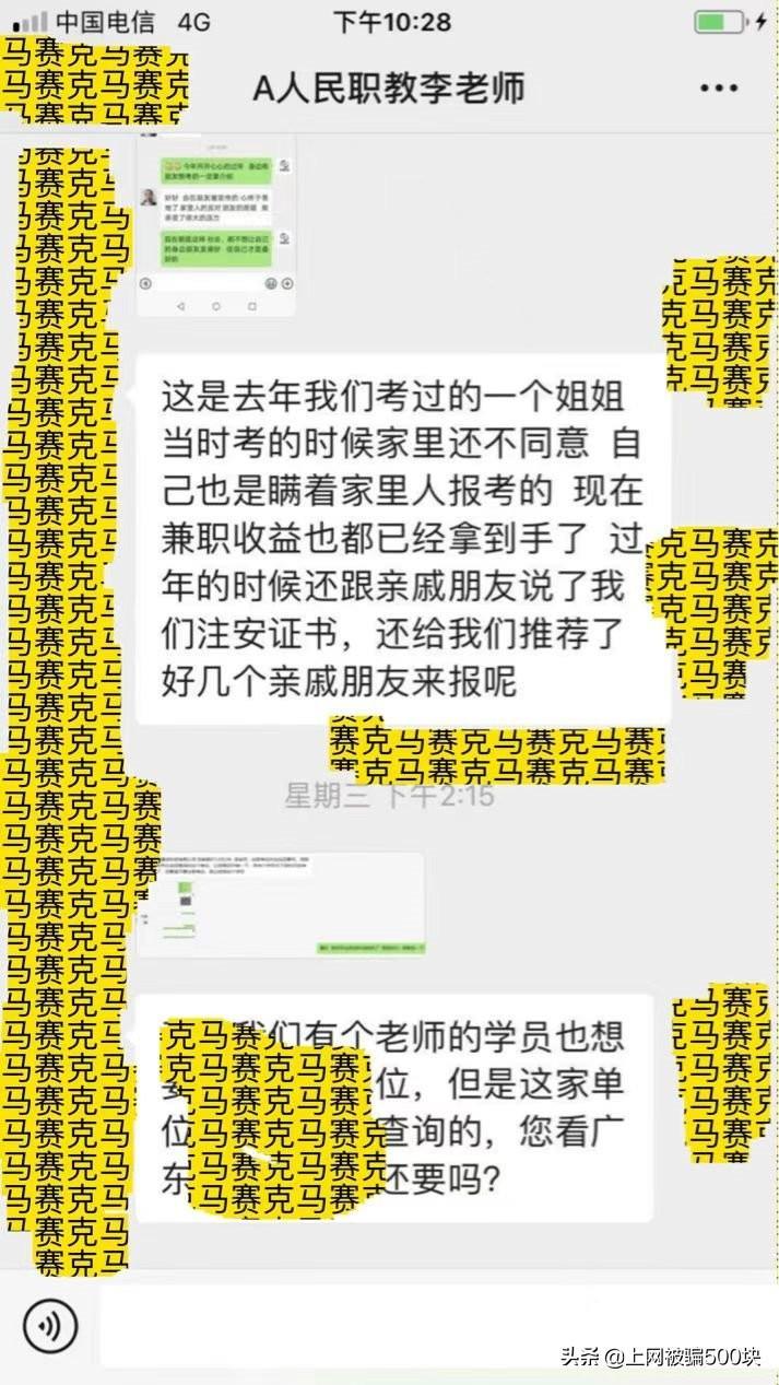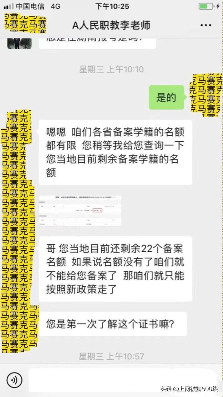 第二天早上就有一个自称是网站教育老师的招生工作人员给我来电话回复并加了我微信,加微信后频繁发送信息说预报名要截止了,马上改革要加试科目,不做预报名就无法报考以及发给我其他学员报名后参加学习后拿到证书成功兼职信息等,劝说赶紧报名,还频频推荐班级。