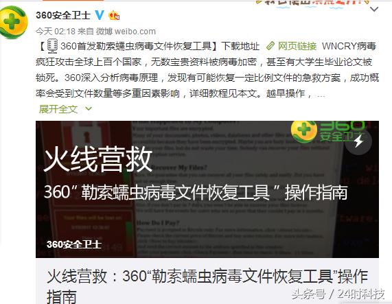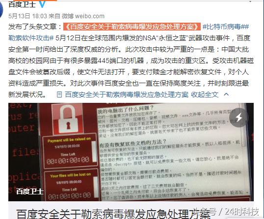 随后腾讯电脑管家和百度卫士也相继也发布了对勒索病毒的应对措施