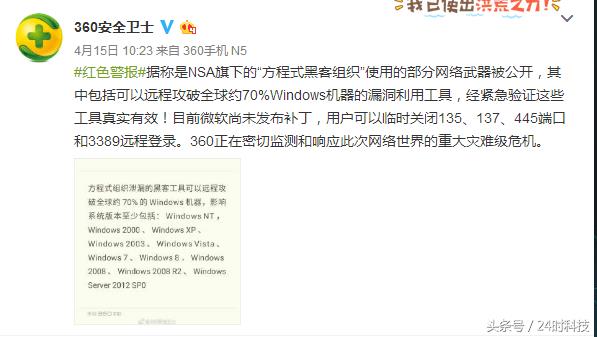 这场WNCRY病毒最早出现在英国,随后快速蔓延到全球各国。国内各大安全软件厂商也在第一时间开启了应急措施,360安全卫士推出的“NSA武器库免疫工具”首冲第一线,