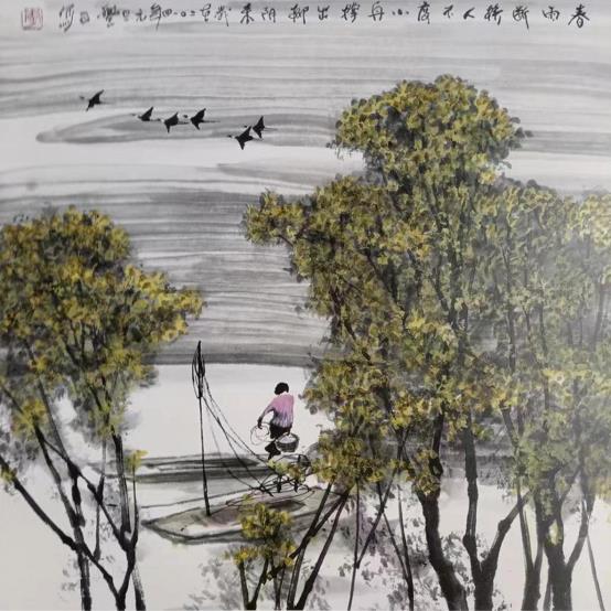 《谁惊一行雁 冲破过江云》纸本设色 68×68cm