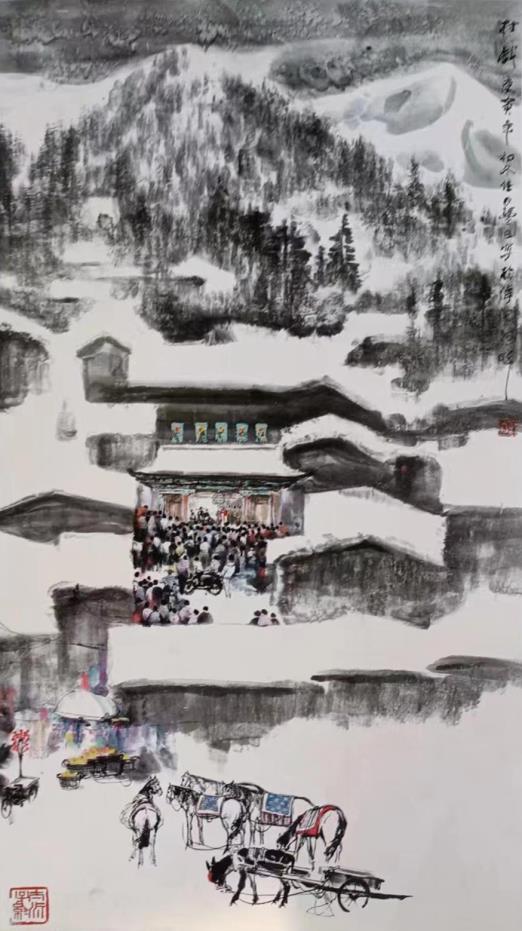 《山城雪》纸本设色 68×136cm