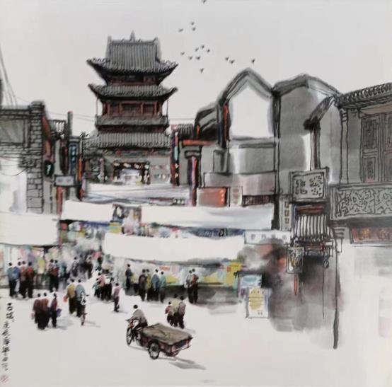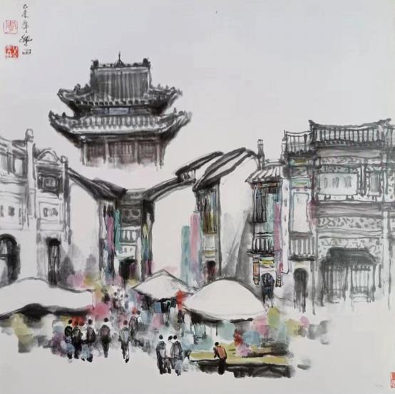 《古城》纸本设色 68×68cm