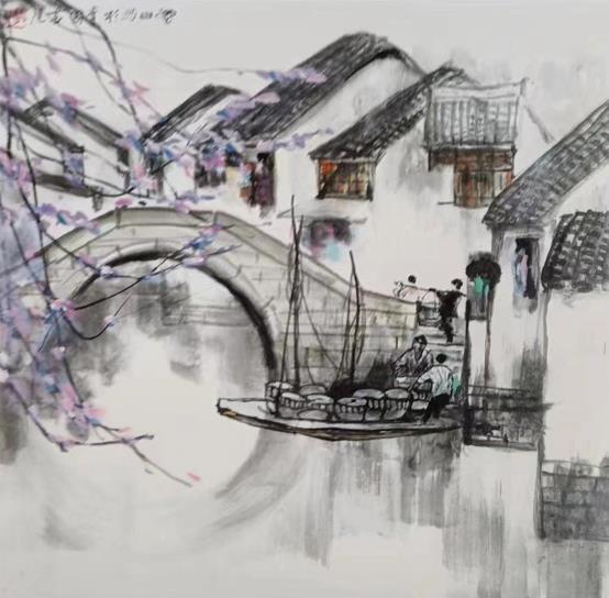 《染坊》纸本设色 68×68cm