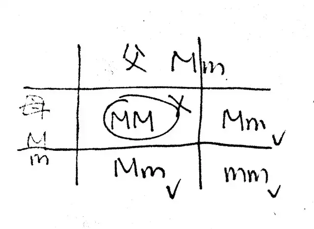 如果用两只陨石边牧配,生出双陨(MM)的概率是四分之一:
