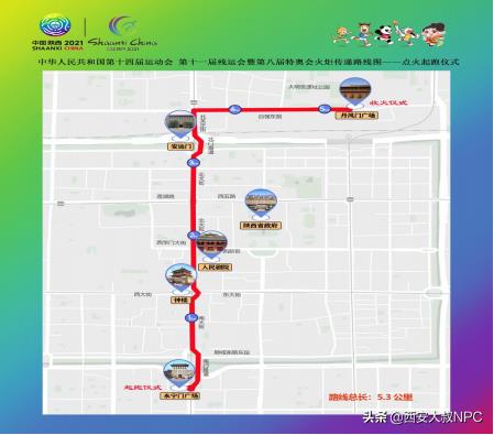 8月16日是从永宁门到大明宫的丹凤门,火炬传递的最后一天9月12日是从西安国际会展中心到奥体中心广场