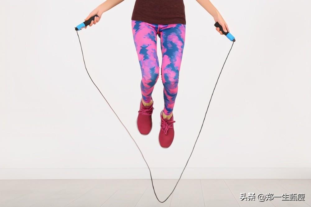 跳绳是对全身有效的锻炼。做这个练习时保持对称和高大的姿势。拿一根跳绳,抓住它的两端。将绳索从头部旋转到腿部,并随着绳索在腿部下方移动而跳跃。跳绳20秒。休息 10 秒,重复此间隔八次。