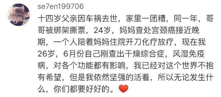 只有亲身经历过那些苦难的日子,才会明白健康对于每个人每个家庭是多么重要,一生平安四个字对于每个人是多么的奢侈。
