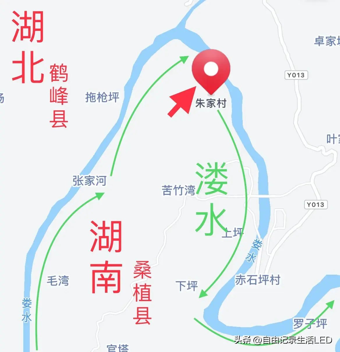 溇水沿湖南湖北两省边界入湖南省-桑植县-朱家村;