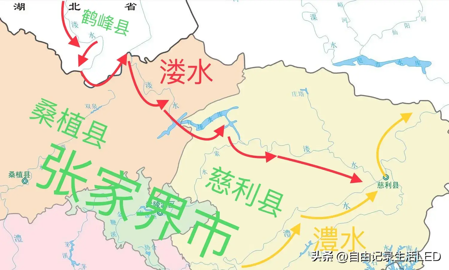 往南经张家界市-桑植县、永定区、慈利县流出;