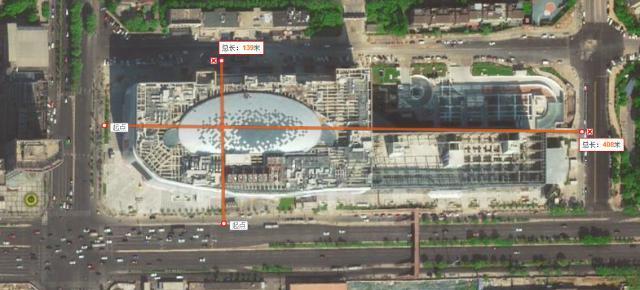 从图中可见,北京合生汇购物中心东西长400多米,南北长100多米