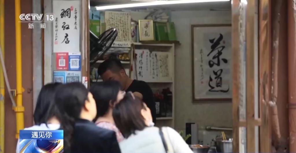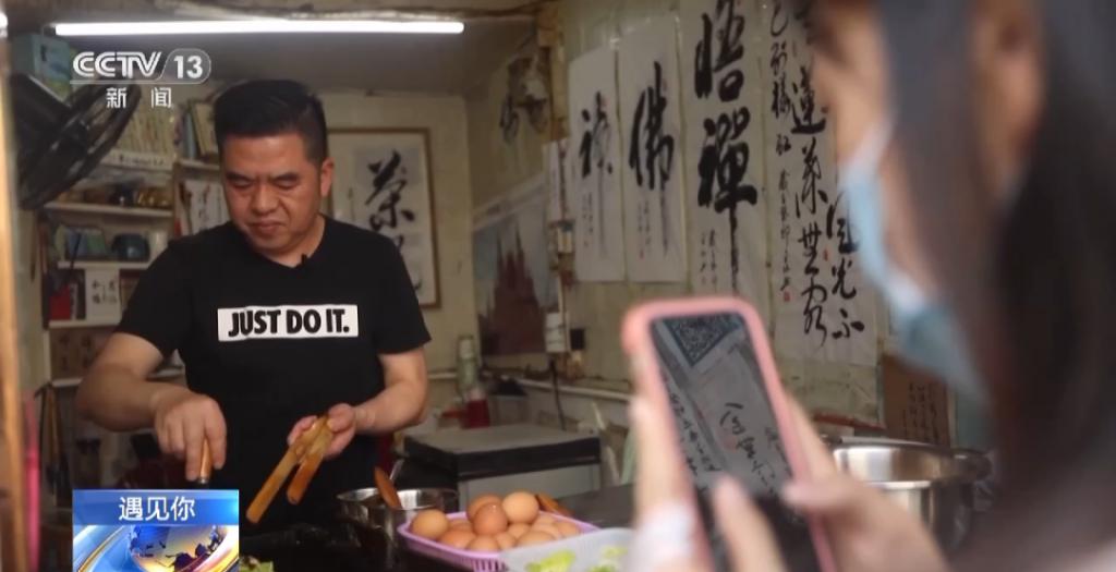 书法作品越贴越多,来小店的人也越来越多。后来,有人把老亢的店拍下来发到网上。如今,除了买饼,很多网友和游客都慕名来小店打卡,还有不少家长带自己的孩子来感受氛围。老亢说:" 如果能给小孩带来一点启发的话,也是好事。"