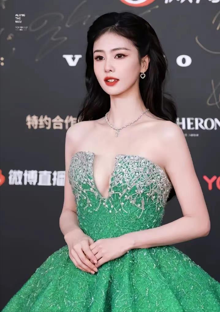 在逃公主白梦妍现身微光盛典,一袭绿色v领连衣裙惊艳全场